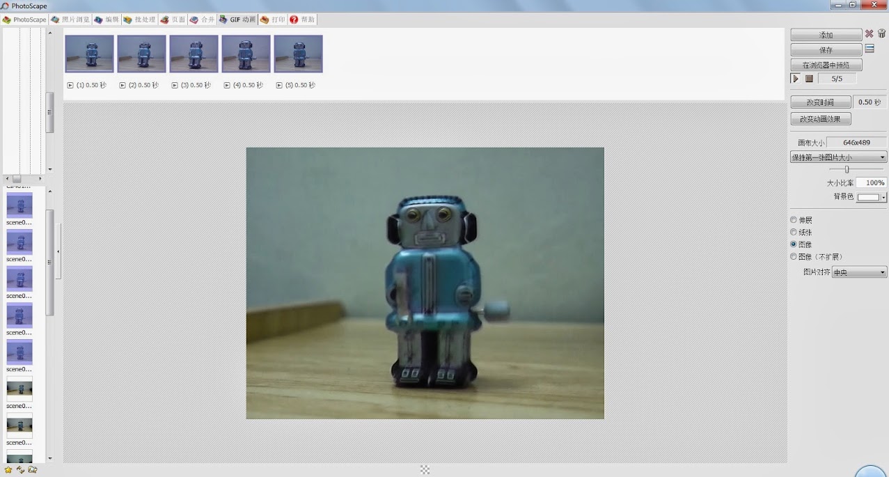 I chose option 2. It is quite easy and I got my pictures. Then, I used PhotoScape to make Gif from the pictures. I dragged the pictures into the Gif maker and saved the file. Done! My first Gif!