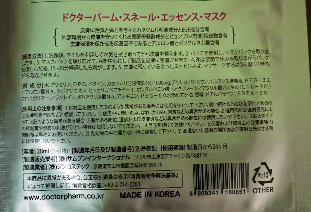 On the texture of the sheet, the surface is quite smooth and adhesion on the face is not bad. The smell is acceptable too. Although this is a snail essence mask, the liquid was not so slimy. Hahaha!