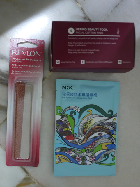 From this first purchase from Hermo, I got a small box of facial cotton pads, a NRK Moisturising Mask and Revlon emery board. Well, I have no use of the nail file, so I gave it to a friend.