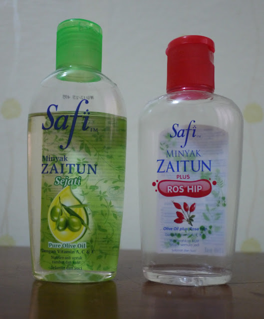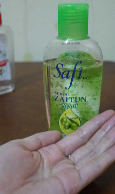 I bought the Safi Minyak Zaitun Sejati (Pure Olive Oil) from Guardian Pharmacy when this exact item was having sales, I forgot the price though. I felt funny everytime I saw the "sejati" on the bottle, why didn't Safi just use the word "tulen", instead of "sejati". To me, "sejati" is for "cinta sejati (true love)"! Hahaha!